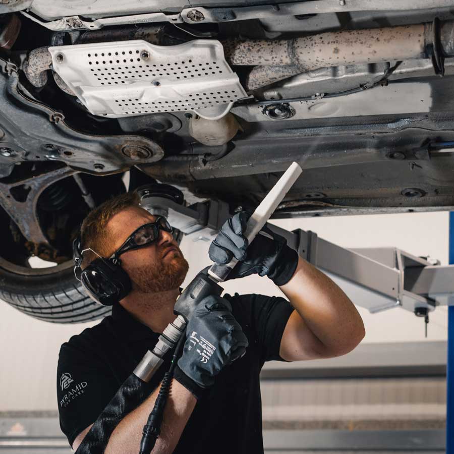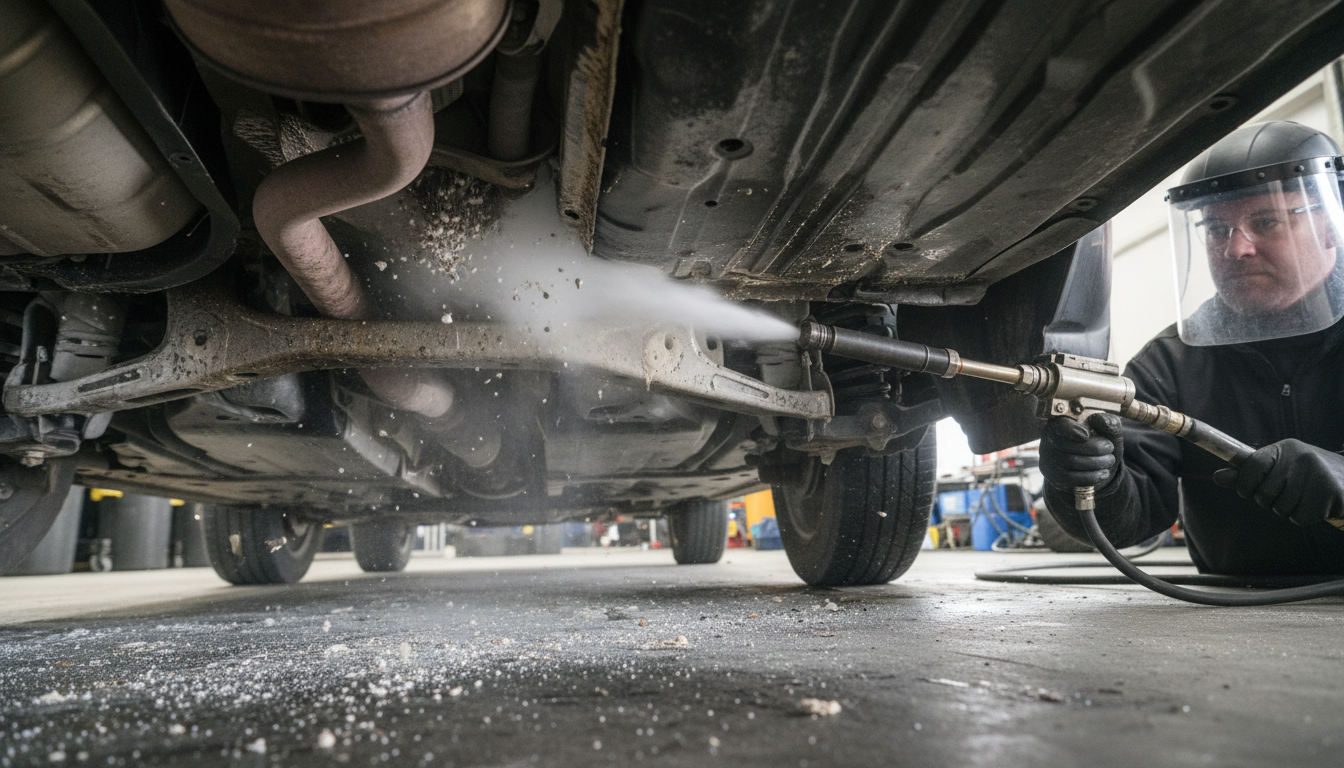 Kompletní ošetření podvozku suchým ledem je profesionální proces, který kombinuje několik kroků: nejprve se provede dekontaminace a mechanické čištění, následuje samotné tryskání suchým ledem k odstranění mastnoty, rzi, starých nečistot a nástřiků.